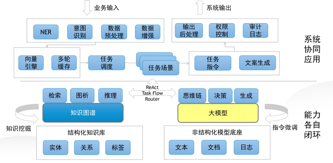 利用大模型可以其语义理解和指令遵循等能力辅助知识图谱的半自动化构建设计、增加知识的全面性和覆盖度,协助更好的完成知识融合和更新